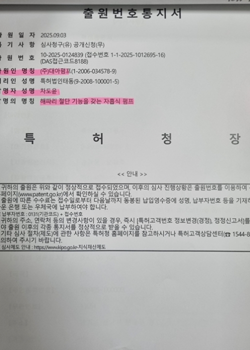 수중 및 습기찬 환경에서도 누전없이 정상 가동 펌프 제어시스템 특허 출원